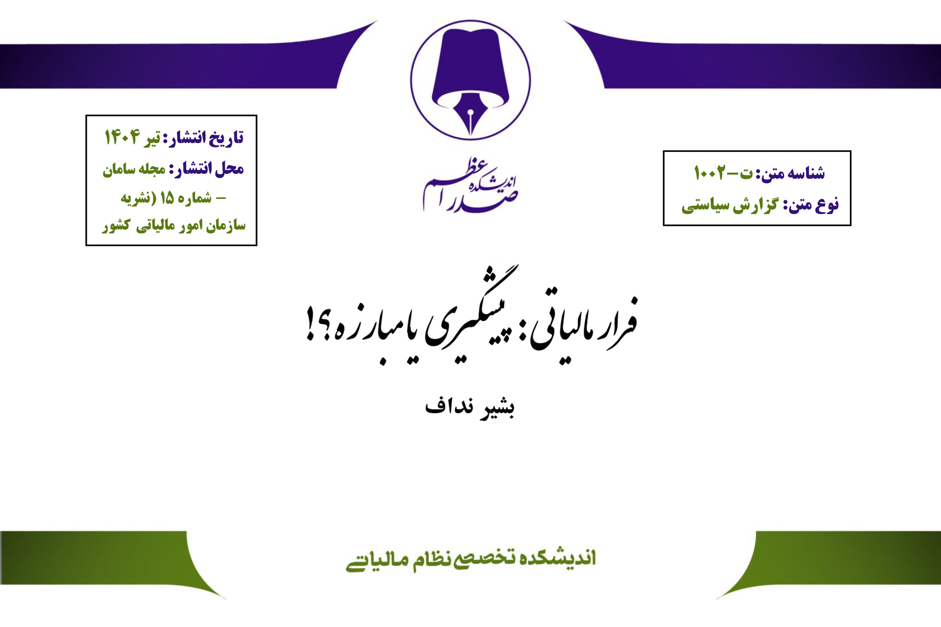 دانلودمقاله (فرار مالیاتی: پیشگیری یا مبارزه؟!) (65 دانلود ها)فرار مالیاتی: پیشگیری یا مبارزه؟!